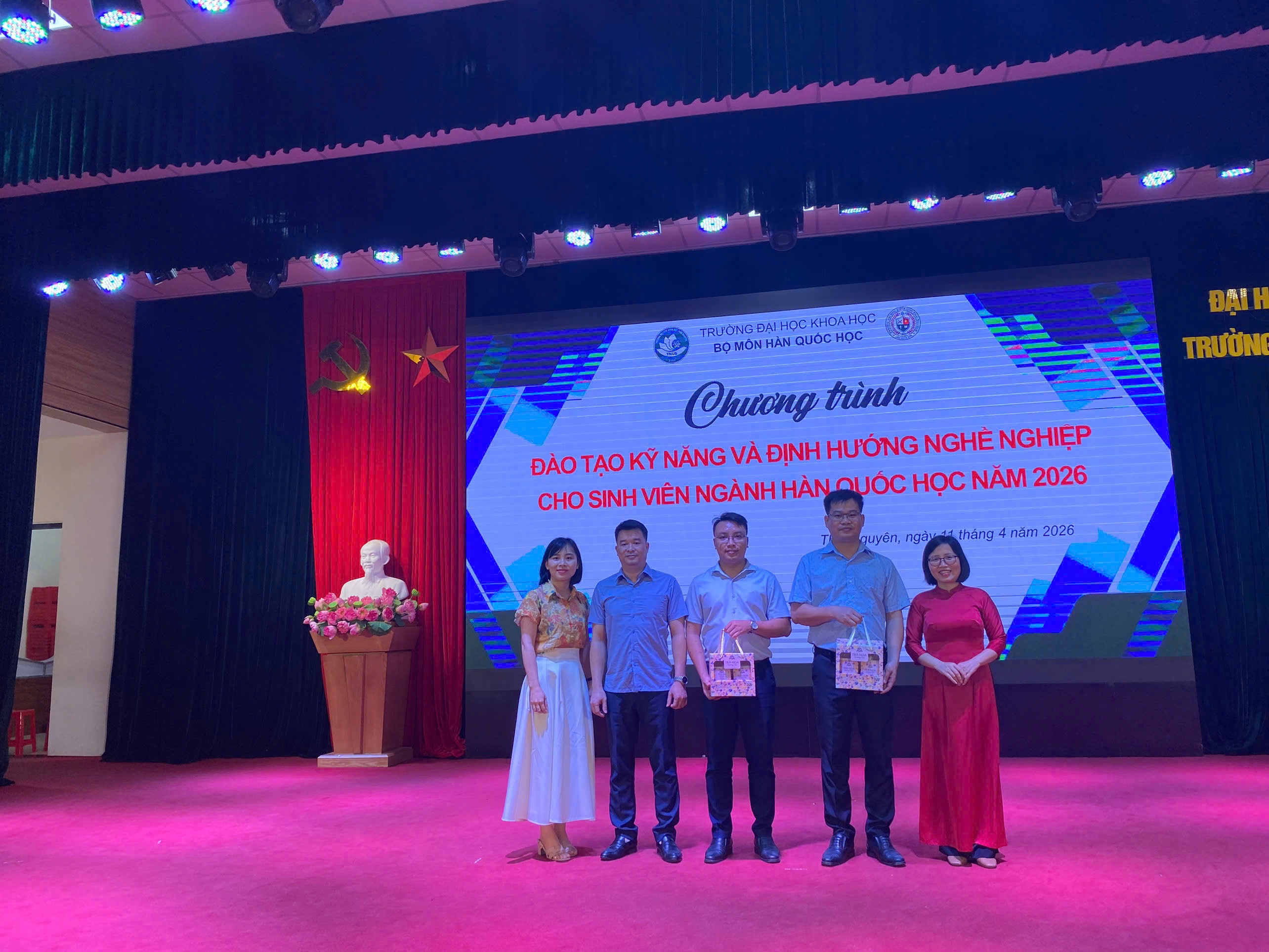 Sáng 11/4/2026, tại Trường Đại học Khoa học – Đại học Thái Nguyên, gần 400 sinh viên ngành Hàn Quốc học đã tham gia “Chương trình đào tạo kỹ năng và định hướng nghề nghiệp cho sinh viên ngành Hàn Quốc học năm 2026” với sự đồng hành của Công ty TNHH LG Display Việt Nam Hải Phòng. Chương trình mang đến cơ hội tiếp cận trực tiếp yêu cầu tuyển dụng và môi trường làm việc thực tế từ doanh nghiệp.
