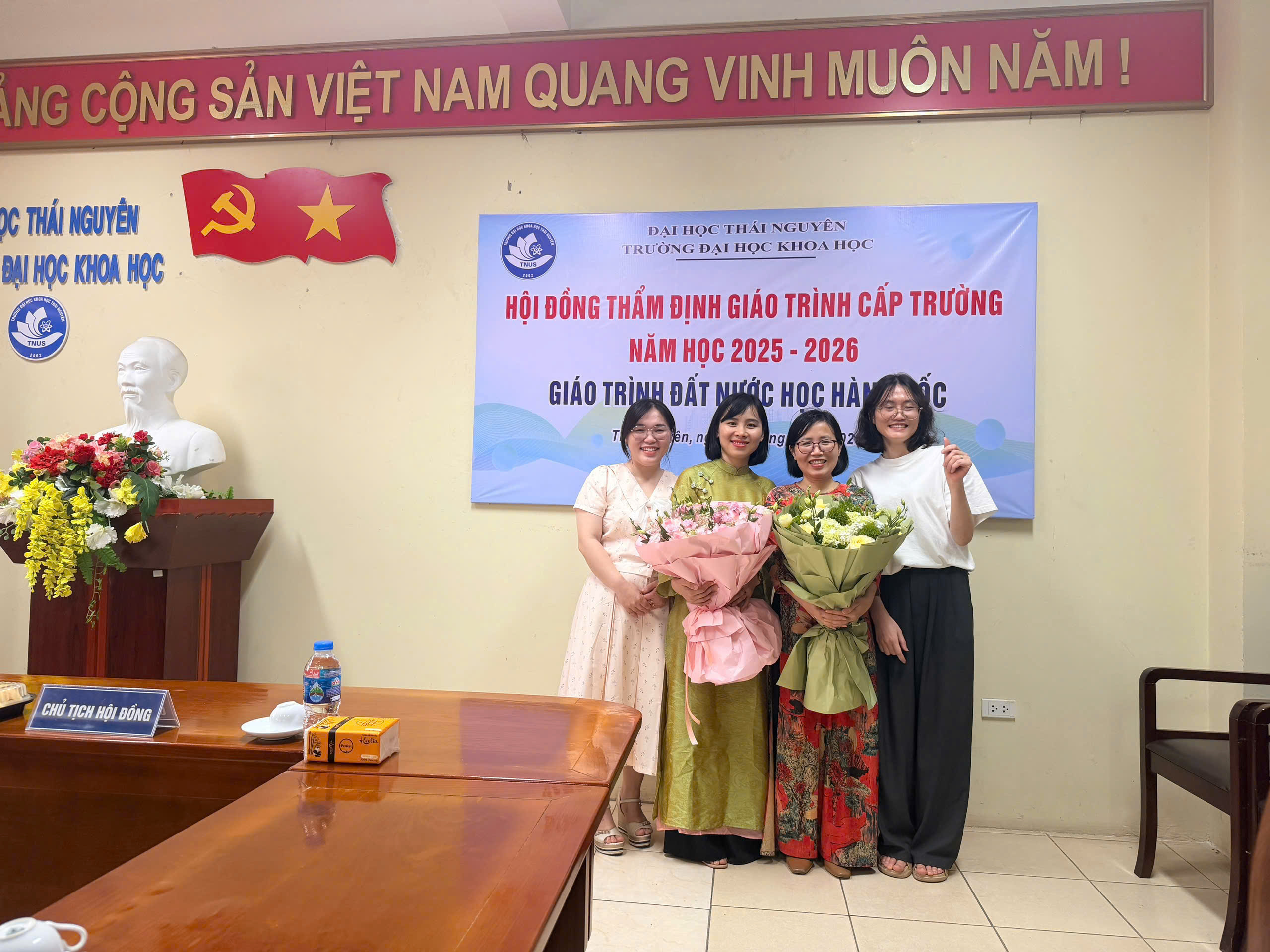Chiều ngày 09/4/2026, tại Phòng họp số 2, Trường Đại học Khoa học – Đại học Thái Nguyên, Hội đồng thẩm định đã tổ chức phiên họp nghiệm thu cấp Trường đối với giáo trình Đất nước học Hàn Quốc, do TS. Nguyễn Thị Huyền Trang và TS. Dương Thị Huyền đồng chủ biên.